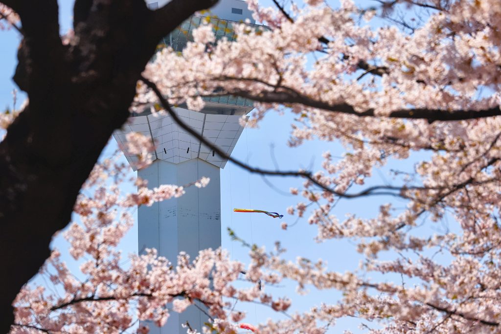 鄰近的五稜郭塔是俯瞰整個五稜郭公園的最佳地點,從塔上可以看到粉紅色櫻花與完整五角星形堡壘交織的粉紅夢幻美景。櫻花祭時期推出的各種商品,也是大家最愛搜刮的函館伴手禮喔!